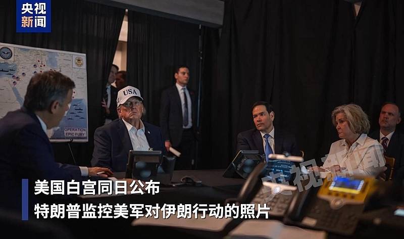 上述两张图为美军公布对伊朗行动视频,特朗普监控行动照片曝光。(来源:央视新闻)
