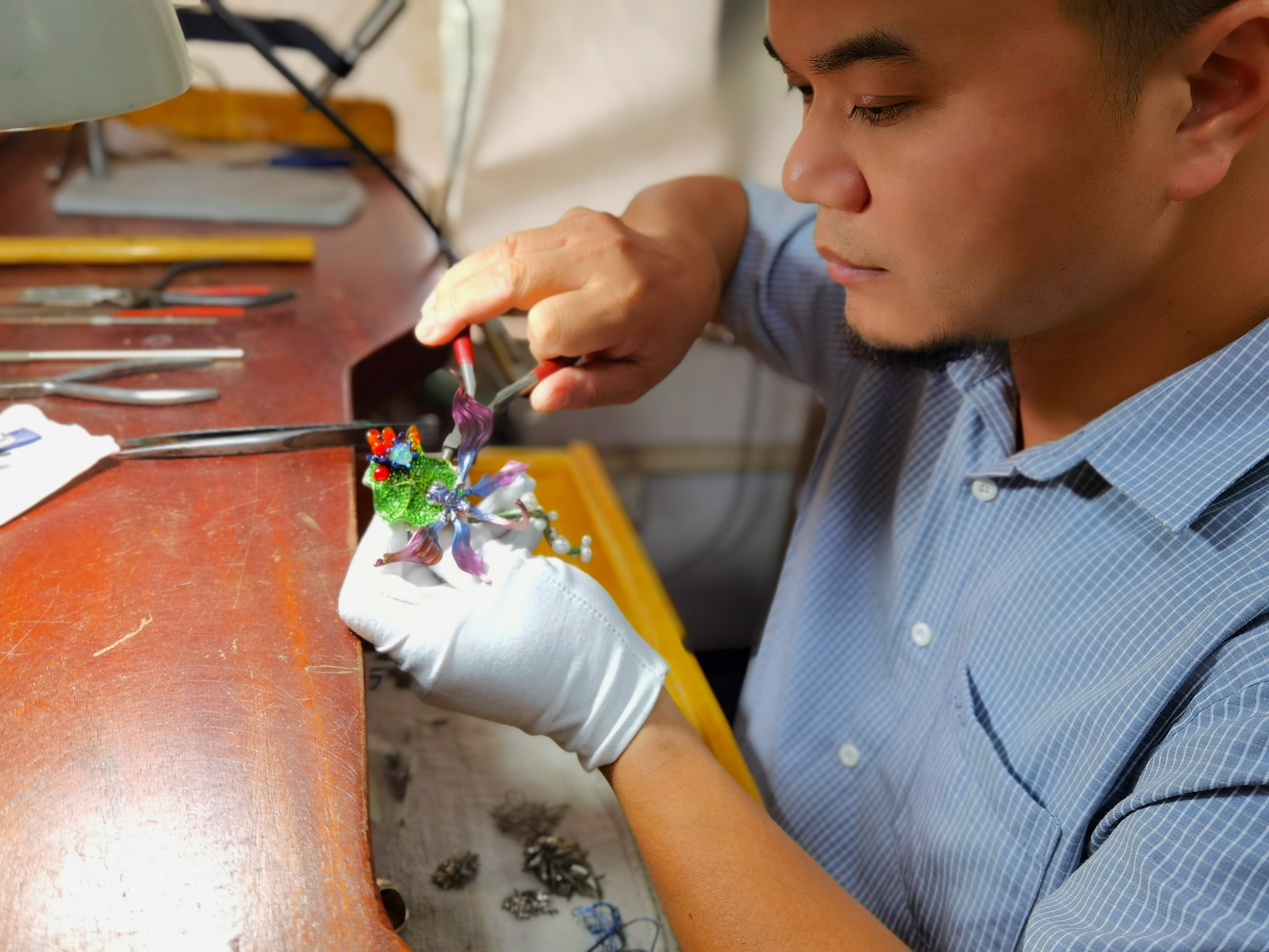 历经四十余年发展,番禺珠宝产业已形成规模庞大、链条完整、外贸强劲的产业集群,以其精湛工艺向世界展示“番禺智造”的实力。而支撑这一美誉的,正是一批又一批技艺超群、匠心独具的珠宝首饰工匠。