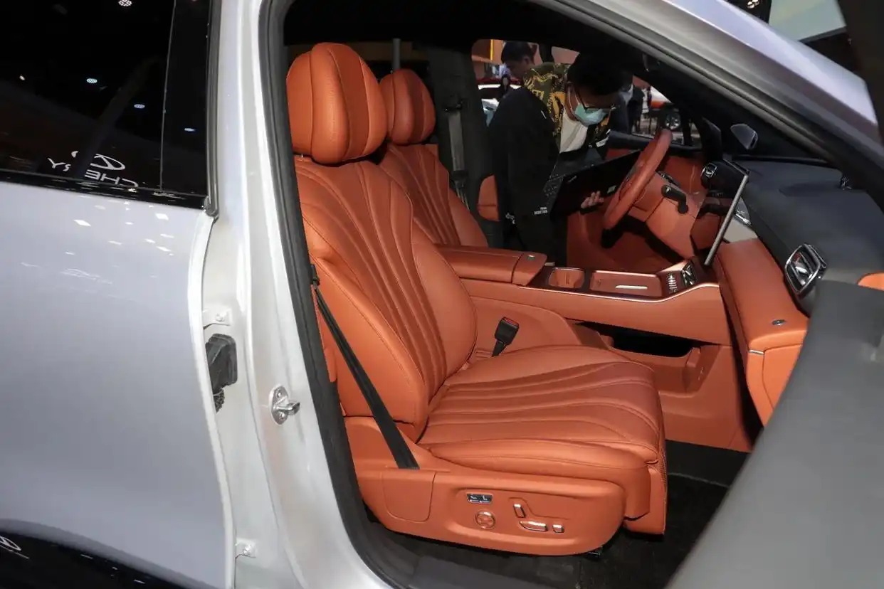空间和座椅方面,实拍车型的前排座椅配有腿托,并支持加热/通风/按摩功能,后排座椅支持靠背调节,还支持加热/通风功能。新车配备了8个扬声器,顶配车型则配备了23个扬声器。